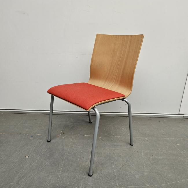 Eromes kantinestoel - beuken / rode stof (alleen per set)