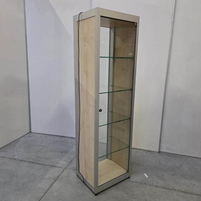 Prachtige glazen vitrinekast met verlichting bij elke schap met sleutels