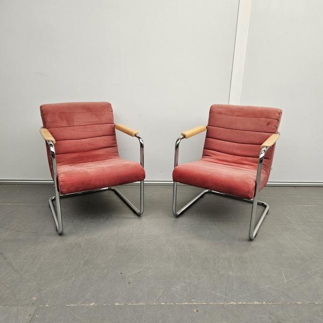 VINTAGE Crack by Machalke fauteuil - rode stof (alleen per set)