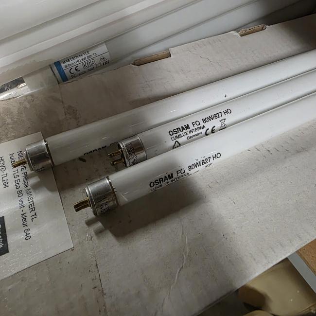 3x gebruikte 80 watt TL buizen 145 cm lang - T5 kleur 827