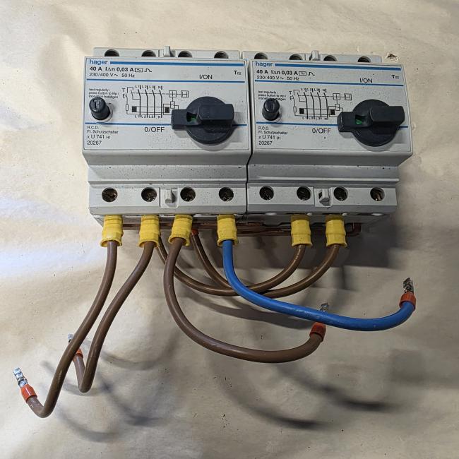 2X HAGER aardlekschakelaar 30 mA 40 A 3-fase