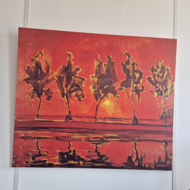 Vijf bomen in tegenlicht aan het Gein met maan - Piet Mondriaan 120X102CM