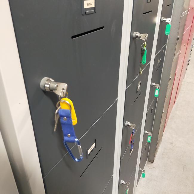 Deuren werken met muntsloten, zodra er een munt in zit kan je de kast op slot draaien en de sleutel er uit halen.