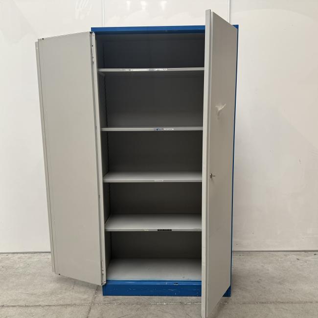 Deze set bestaat uit twee hoogwaardige metalen draaideurkasten met verstelbare legborden en een veilig draaislot met 2 sleutels. Perfect voor ieder kantoor, magazijn of werkruimte!