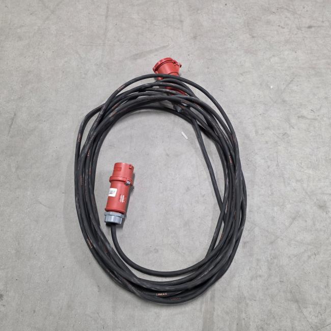 15 m zware elektra verlengkabel 400V met 5 polige 32A stekker en contrastekker